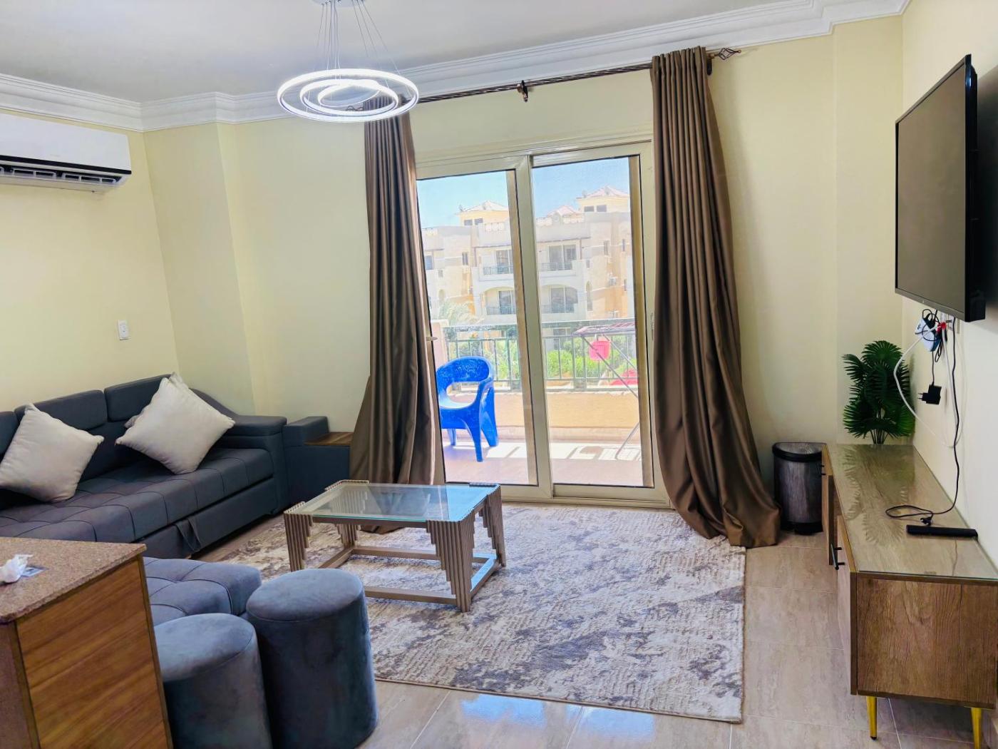 Set in Ain Sokhna in the Suez Governorate region, قرية لاسيرينا بالم بيتش has a balcony. This beachfront property offers access to a terrace. In their free time, guests at the holiday home can opt for a relaxing dip in the outdoor swimming pool, a drink at the bar or a stroll in the garden.