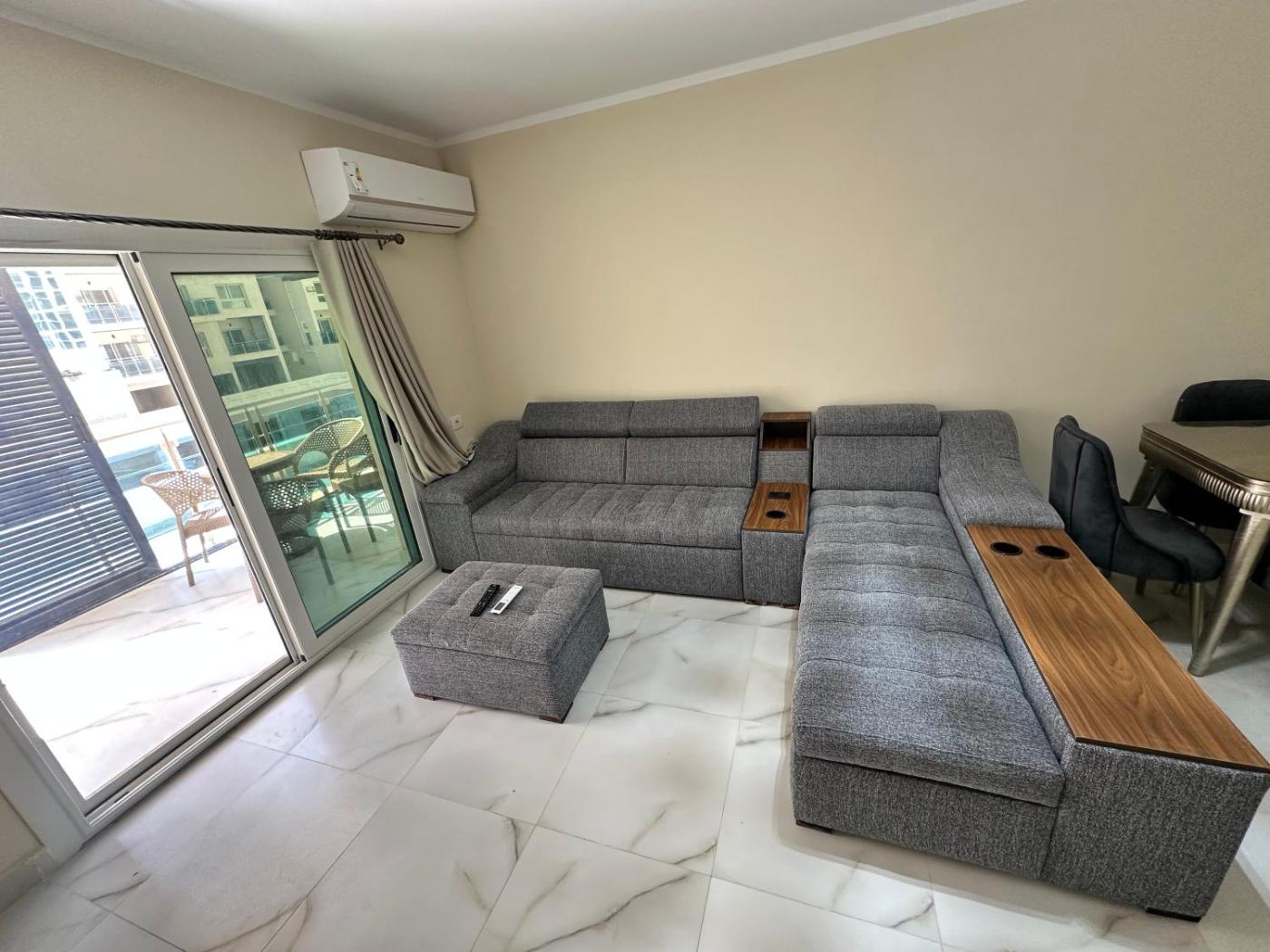 Situated in El Alamein, 20 km from Marassi Marina and 12 km from Porto Marina, شالية متميز في العلمين الجديدة ثلاث دقائق من فندق ريكسوز features air-conditioned accommodation with a balcony and free WiFi. This apartment also features a private pool.