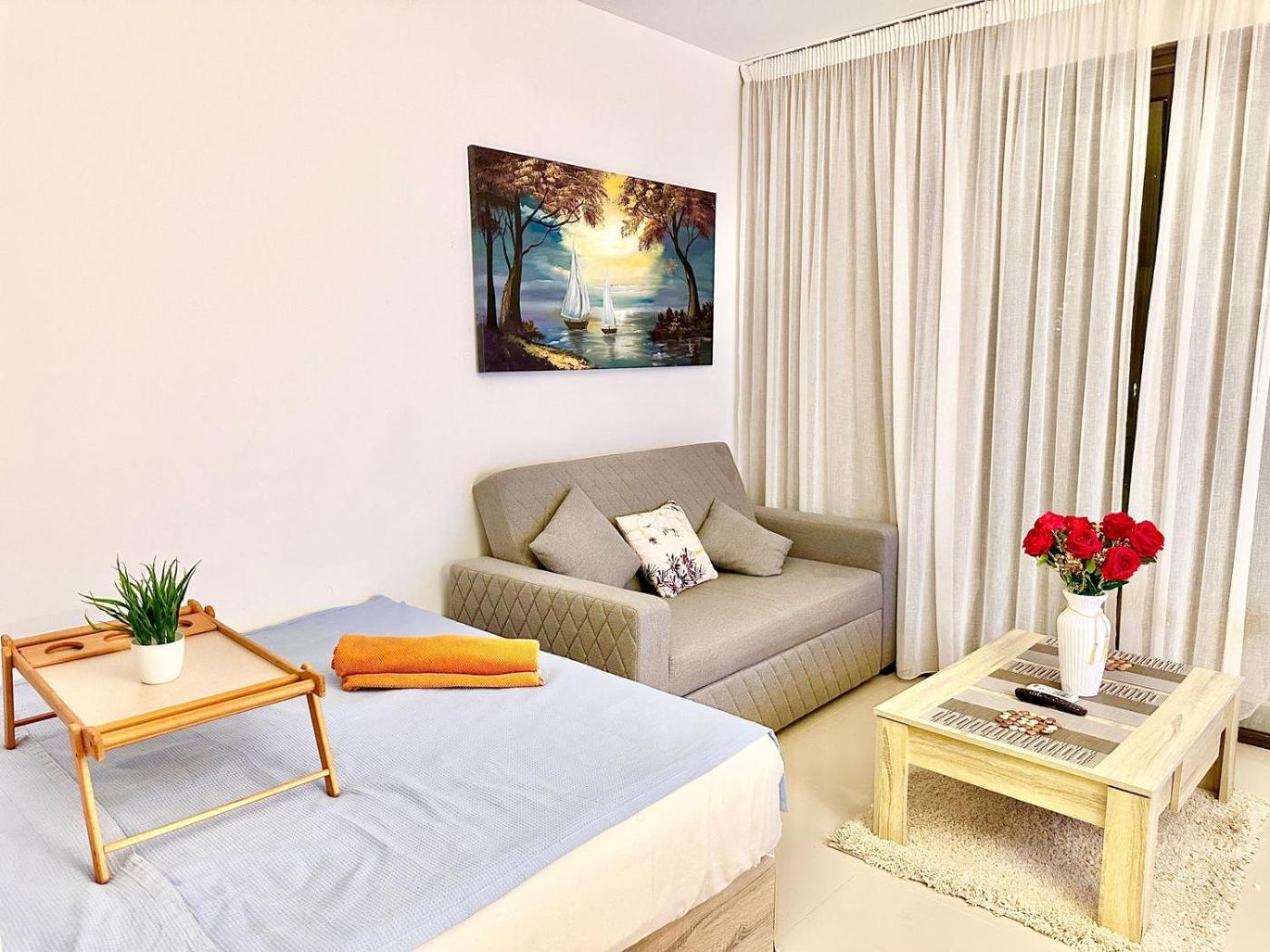 One-Bedroom Apartment. This apartment features a private pool. This air-conditioned apartment features 1 living room, 1 separate bedroom and 1 bathroom with a bath. The apartments kitchen is available for cooking and storing food. Boasting a balcony with garden views, this apartment also features a washing machine and a flat-screen TV with satellite channels. The unit has 2 beds.