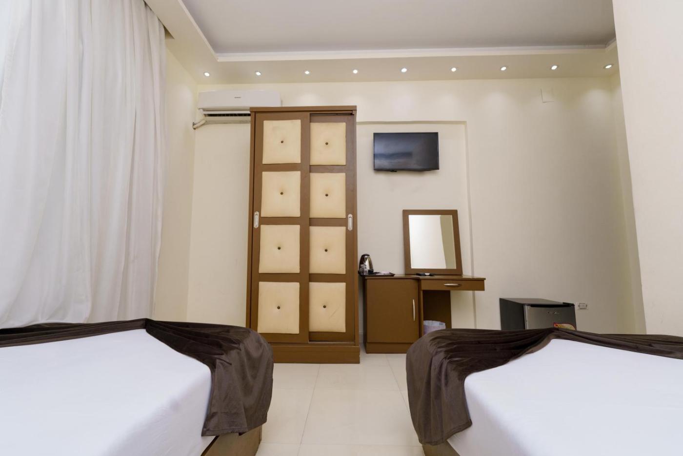 Twin Room. The twin room features air conditioning, a wardrobe, as well as a private bathroom boasting a shower. This twin room offers a flat-screen TV. The unit has 2 beds. ;