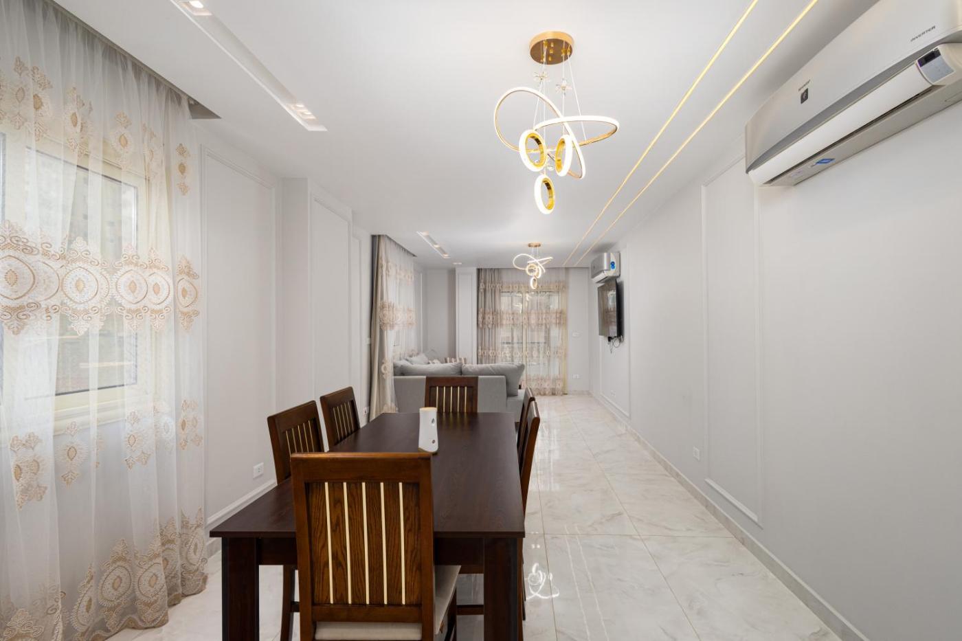 Three-Bedroom Apartment. The apartments kitchen is available for cooking and storing food. The spacious apartment features air conditioning, a washing machine, a seating area, a wardrobe, as well as a flat-screen TV with satellite channels. The unit has 3 beds.
