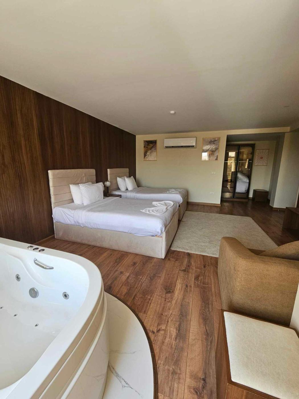 Premium Room with Partial Pyramids View And Jacuzzi. The spacious twindouble room has a private bathroom fitted with a walk-in shower and a bidet. ;