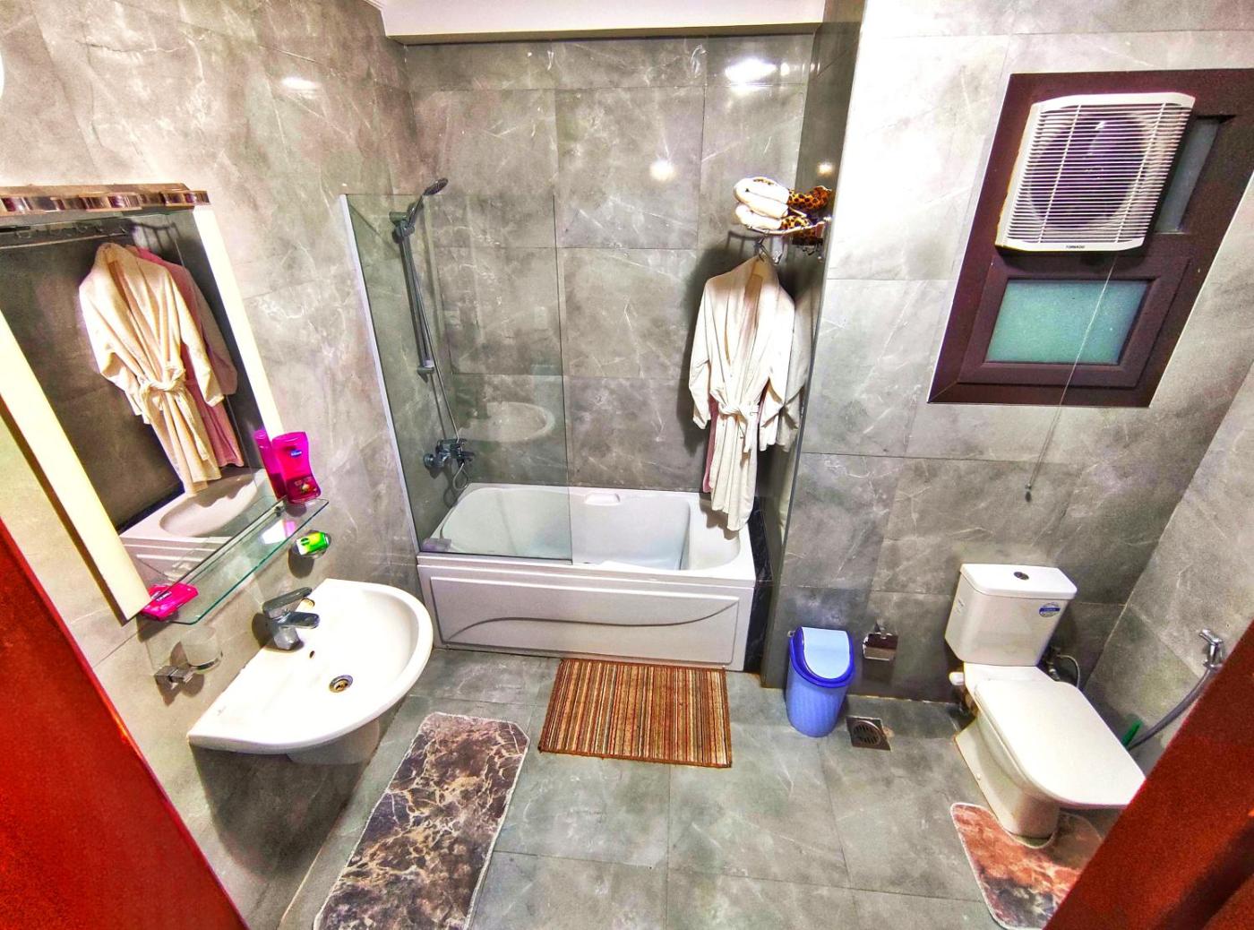 Facing the beachfront in Port Said, Porto Said شاليه ملكى صف اول بحر بورتو سعيد has an outdoor pool and a garden. There is free private parking and the property offers paid airport shuttle service.