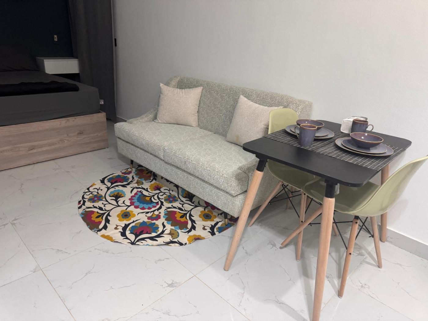 Studio with Balcony. The studio provides a wardrobe, a sofa, as well as a private bathroom boasting a bath or a shower and slippers. The well-equipped kitchen has a stovetop, a refrigerator, kitchenware and a microwave. The spacious air-conditioned studio offers a flat-screen TV with cable channels, a washing machine, a tea and coffee maker, a dining area as well as garden views. The unit has 1 bed.